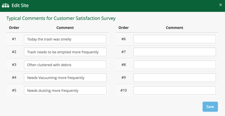 The tablet also has the ability to select from a list of pre-defined typical comments for fast input. This is where those comments are edited or added so they appear in the Tablet drop down menu (shown below).