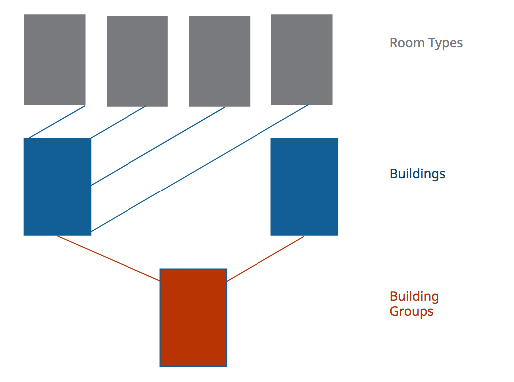 The sections of each KPI report are then grouped by the Room, Building, and Building Group (if applicable) to isolate defined areas for improvement. If available, trends are also shown for up to 5 periods.