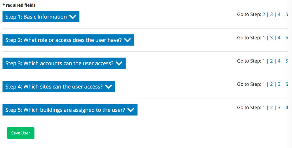 Step 5 of the User Setup is where buildings are assigned to individual users.
