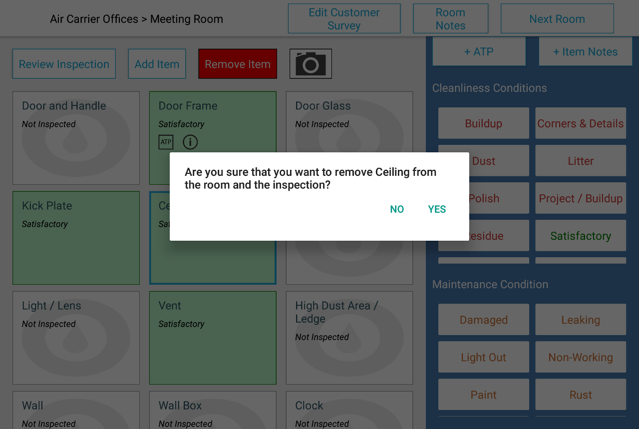 You will be prompted to confirm the removal of the item from the room. Tap “yes” to remove the item, or tap “No” to cancel; either way, you will return to the room inspection screen.