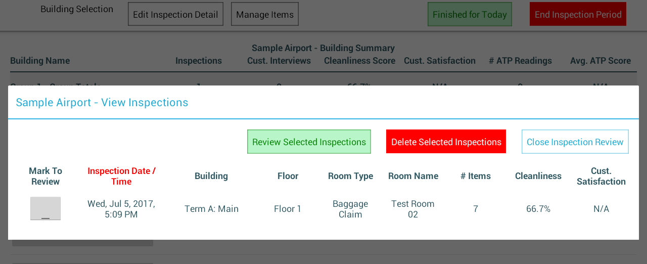 You may also delete inspections by selecting them and tapping the red “Delete Selected Inspections” button: