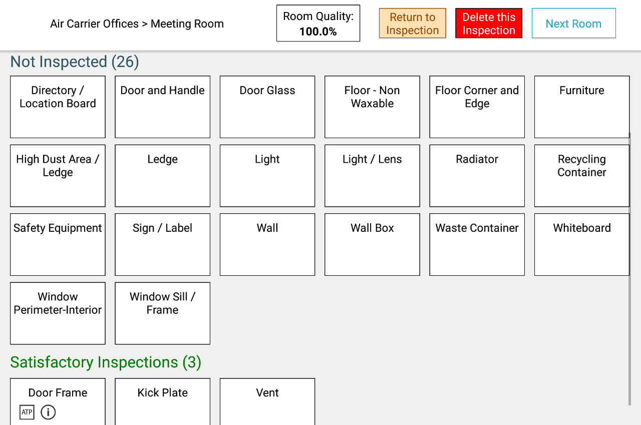 Finishing inspection Review (“Next Room” in the example above) will take you back to the